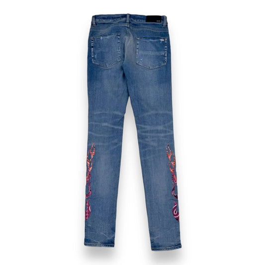 AMIRI BANDANA FLAME DISTRESSED DENIM JEANS BLUE 30W