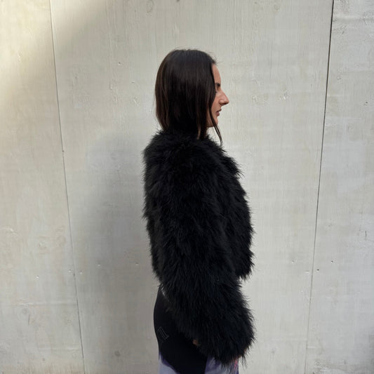Black Feather Cropped Jacket