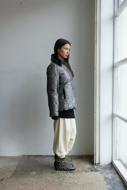 Jil Sander silver rabbit fur hooded jacket