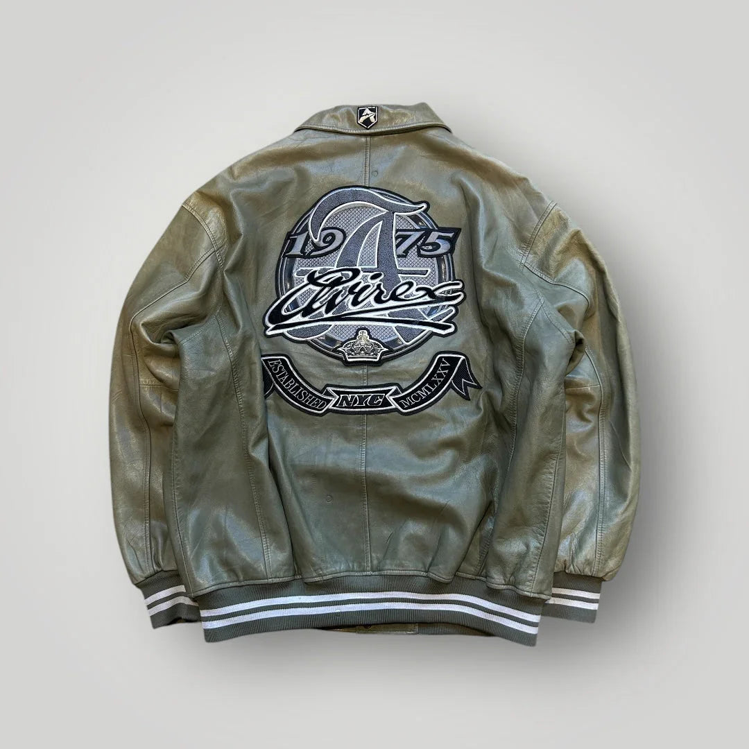 Vendor:1036 EmporiumARCHIVE Avirex Atlanta Leather Jacket In Dark Green & Cream - Bootleg ( XL )