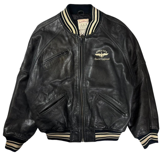 Avirex Record Breakers Leather Jacket In Black ( L )