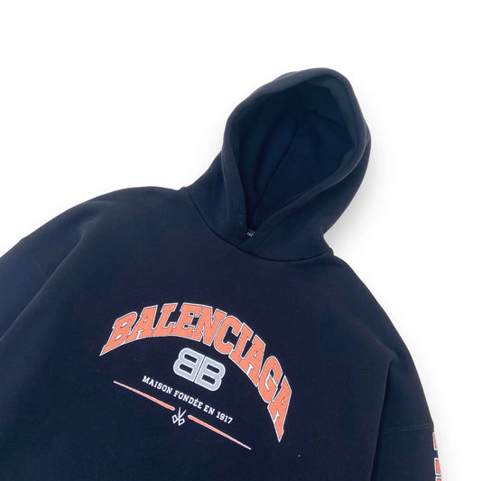 BALENCIAGA MAISON FONDE LOGO-PRINT COTTON-BLEND JERSEY HOODIE BLACK XL