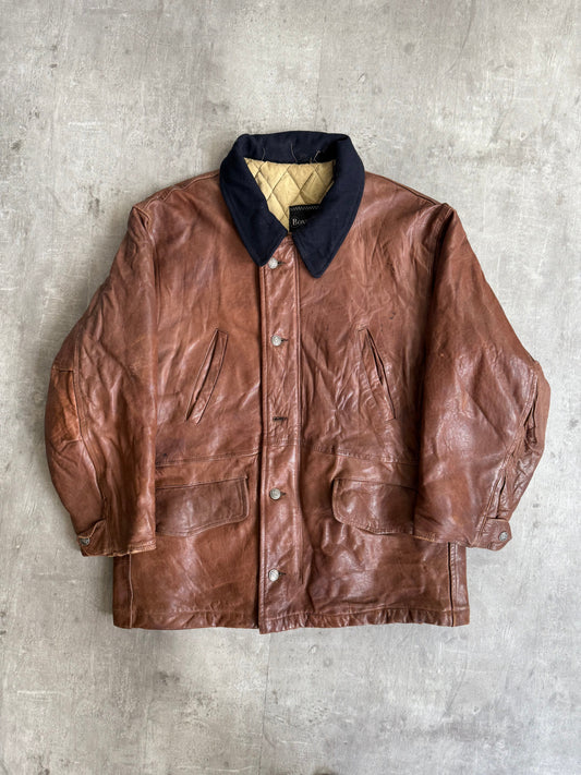 1980s Boneville Leather Chore Jacket with Wool Collar