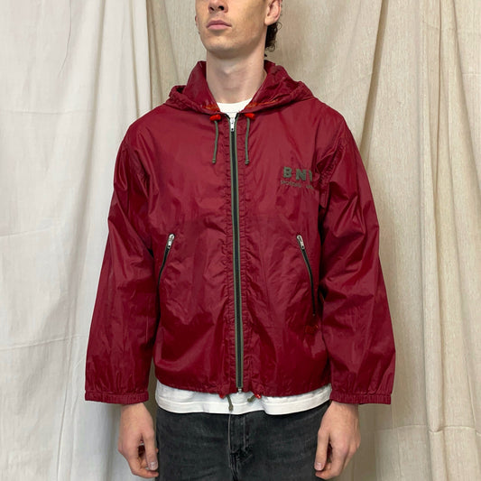 Boneville Red 80s Nylon & Chenille Patch Hooded Windbreaker Jacekt