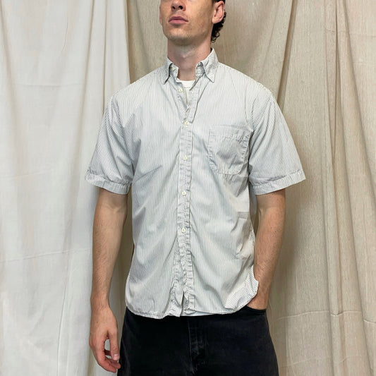 Boneville Brown & Cream 80s Pin Stripe Short Sleeve Pocket Shirt