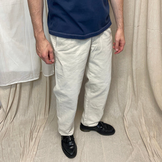 Boneville Cream White 80s Pleat Denim Barrel Jeans