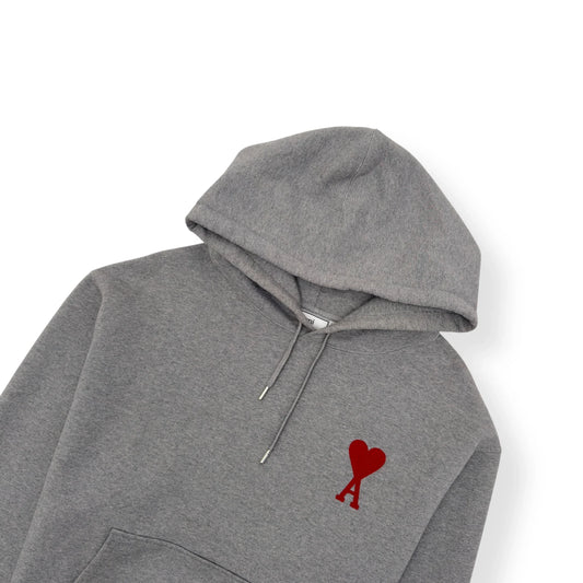 AMI PARIS LOGO HOODIE GREY / RED M