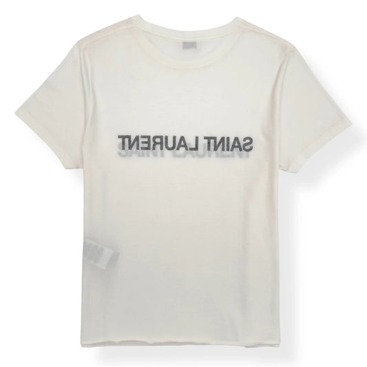 SAINT LAURENT LOGO-PRINT COTTON T-SHIRT WHITE / BLACK M