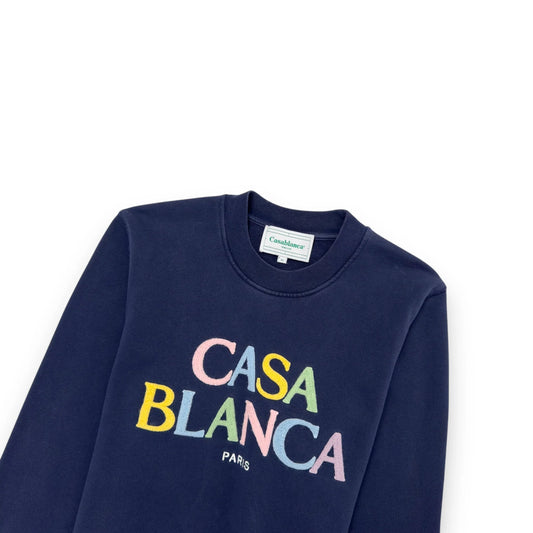 CASABLANCA STACKED LOGO CREWNECK SWEATER NAVY BLUE XS