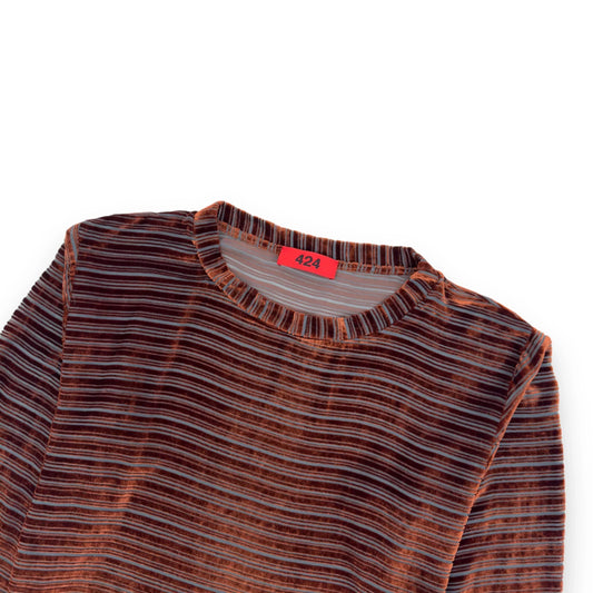 424 STRIPED RUST LONG-SLEEVE TOP L