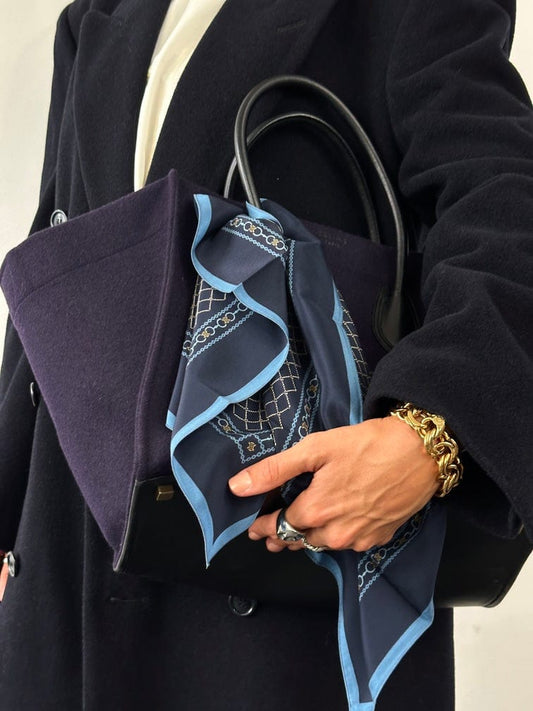 Vintage Celine Silk Scarf With Navy & Red Chain Print