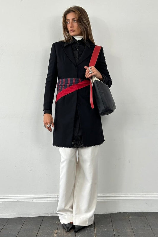 Celine Stripe Side Silk Trousers Blue/ White 10