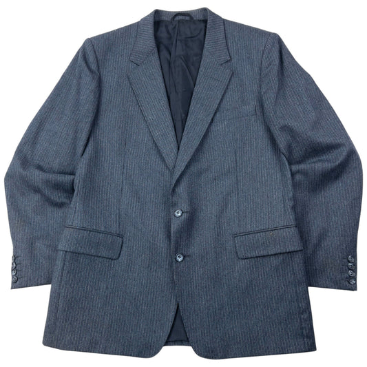 Vintage 80s Dior Monsieur Striped Wool Jacket & Trousers Suit Set Size L | Large, Grey