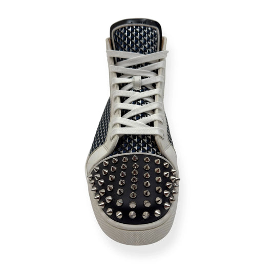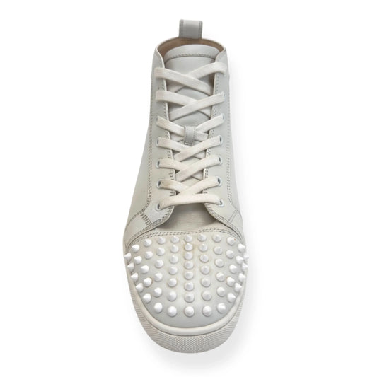 CHRISTIAN LOUBOUTIN LOU SPIKE FLAT CALF HIGH TOP SNEAKER WHITE UK10.5