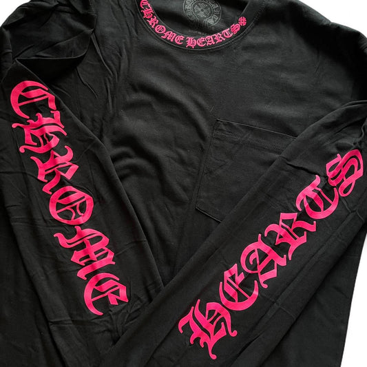 Chrome Hearts Black Pink Long Sleeve Pocket Crew