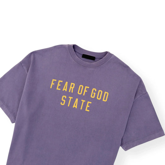 FEAR OF GOD ESSENTIALS OVERSIZED CREWNECK T-SHIRT PURPLE / YELLOW L