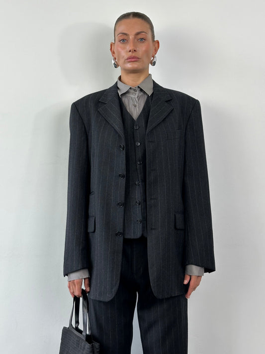 Yves Saint Laurent Pour Homme 1990s Brushed Wool Pinstripe Three Piece Suit - 40R/W30