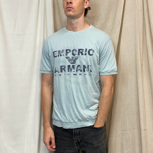 Emporio Armani Swimwear Blue 90s Double Layered Graphic Spellout Tee