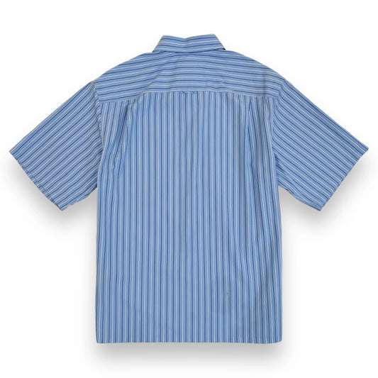 PRADA STRIPED LOGO PATCH COTTON SHORT SLEEVE SHIRT BLUE M