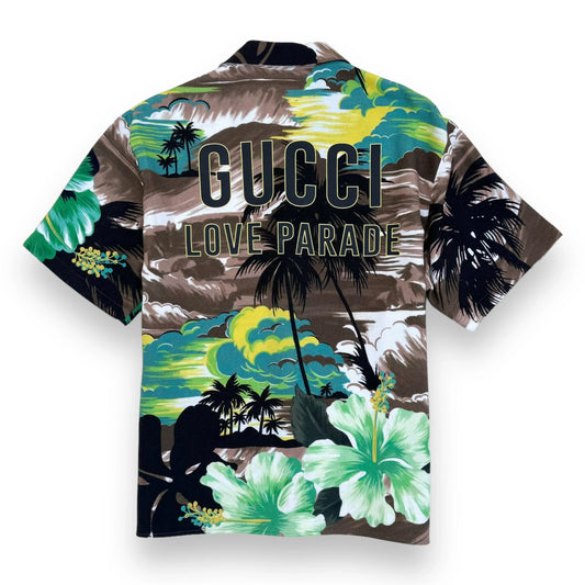 GUCCI LOVE PARADISE VISCOSE PALM TREE SHIRT GREEN M
