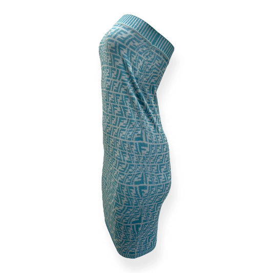 FENDI FF VERTIGO-JACQUARD KNIT MINI DRESS BLUE / WHITE 36 / XS