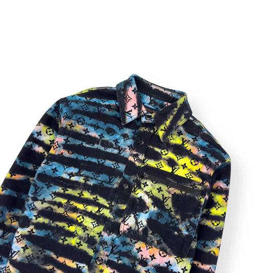LOUIS VUITTON OVERSIZED UPCYCLED MONOGRAM TIE-DYE DENIM SHIRT MULTICOLOURED XS