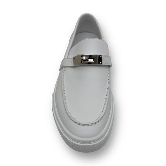 HERMÈS GAME SLIP-ON LEATHER SNEAKER WHITE / SILVER EU42.5 / UK8.5