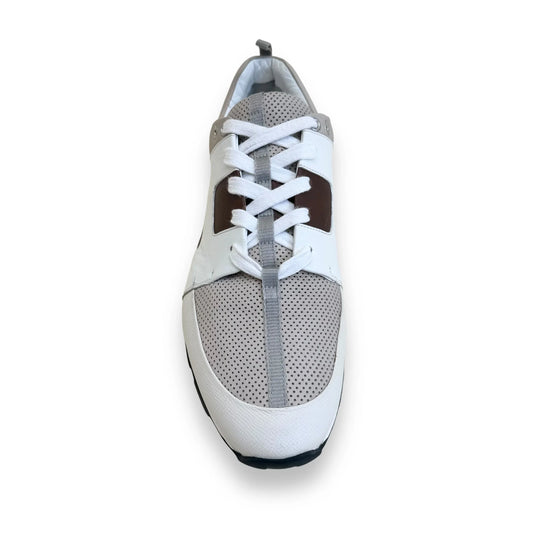 HERMES LEATHER MATCH RUNNER SNEAKER WHITE / TAN UK9.5