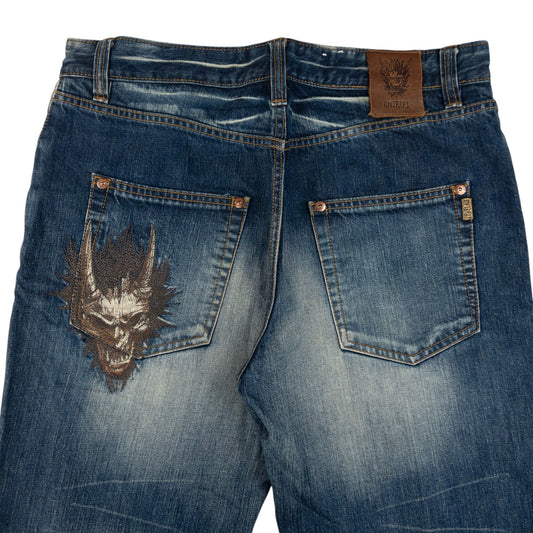 Vintage Oniarai Embroidered Monster Japanese Denim Jeans Size W32