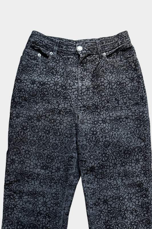 Jean Paul Gaultier 1990s Black Velvet Flocked Denim Jeans
