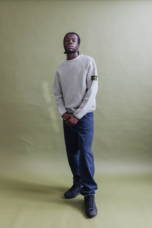 Stone Island Cream & Blue SS97 Emblem Detailed Chenille Knit Jumper