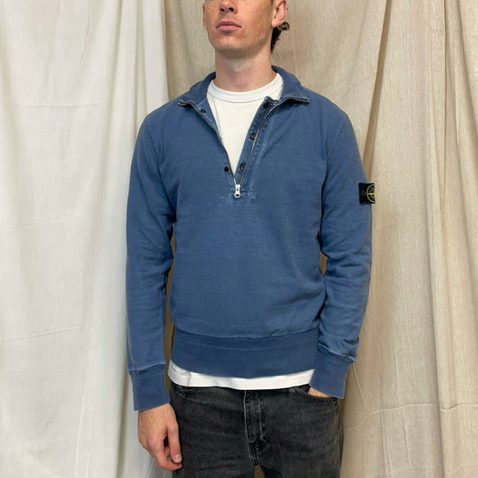 Stone Island Blue SS10 Half-Zip & Button Cotton Knit Jumper