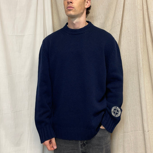 Stone Island Navy AW99 Sleeve Emblem Chunky Wool Knit Crewneck Jumper