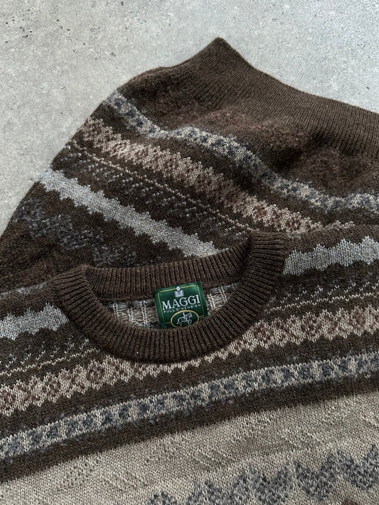 Italian Vintage 1990s Wool Alpaca Patterned Knit Jumper - XL