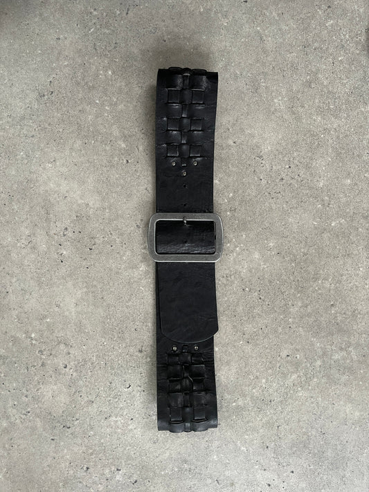 Vintage 1990s Square Buckle Woven Leather Belt - W31-35
