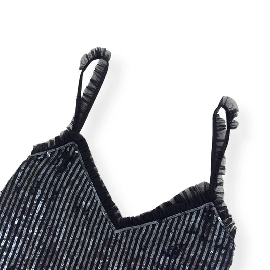 NEEDLES & THREAD SEQUIN RUFFLE PARTY TOP BLACK M