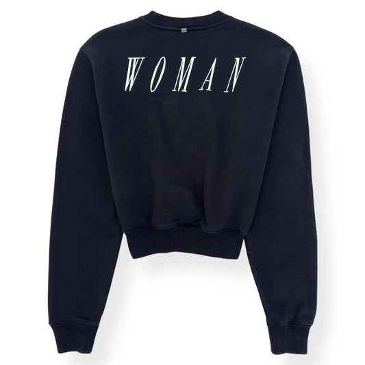 OFF-WHITE WOMENS LOGO PRINT CROPPED SWEATSHIRT BLACK / WHITE S