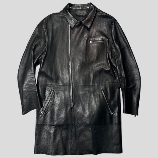 Prada FW99 Calf Leather Moto Long Jacket with Belt Bag - L