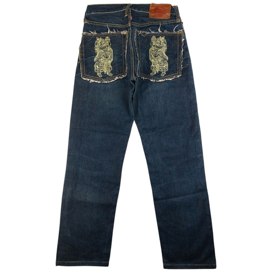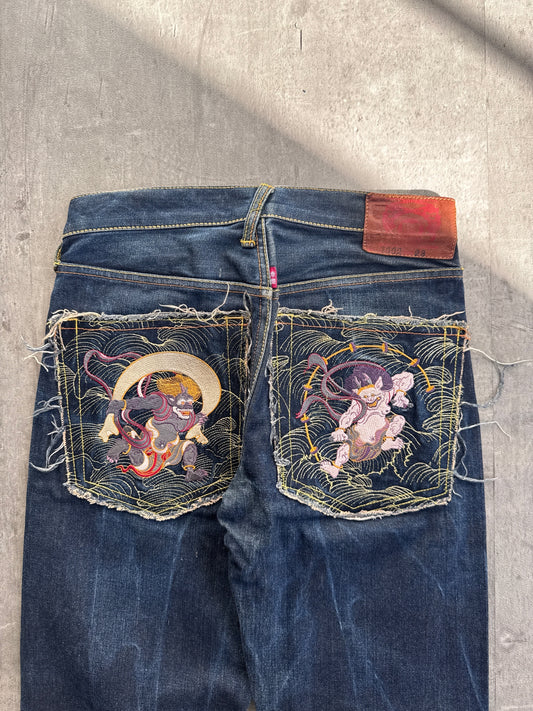 Vintage RMC Red Monkey Company Embroidered Golden God Japanese Denim Jeans Size W28