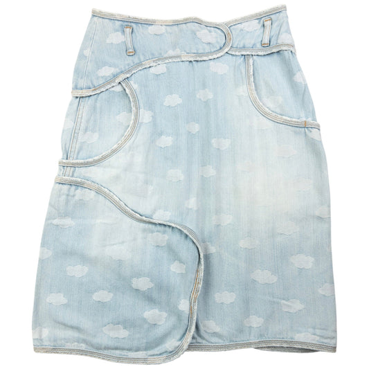 Vintage Tsumori Chisato By Issey Miyake Cloud Print Denim Skirt Womens Size W26