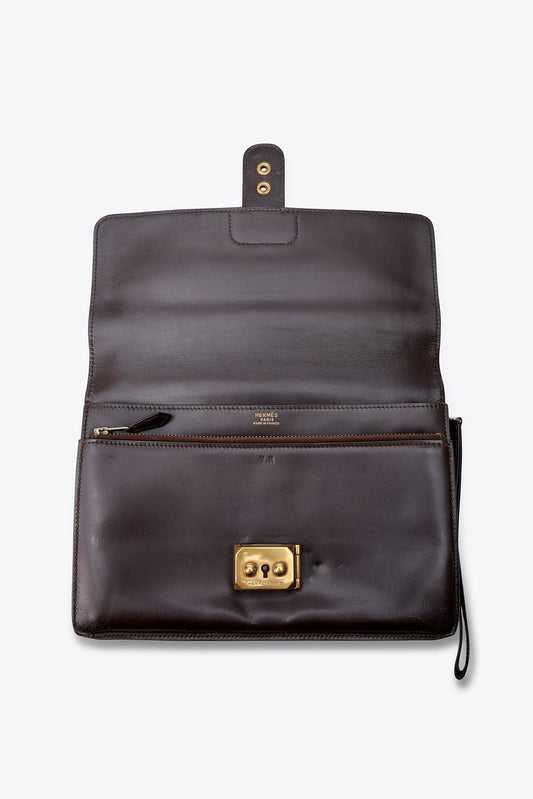 Vintage Hermès Jet Clutch in Dark Brown Box Leather with Gold Hardware