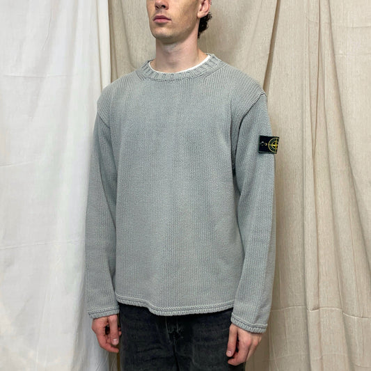 Stone Island Grey SS99 Heavyweight Knit Green Edge Badge Crewneck Jumper