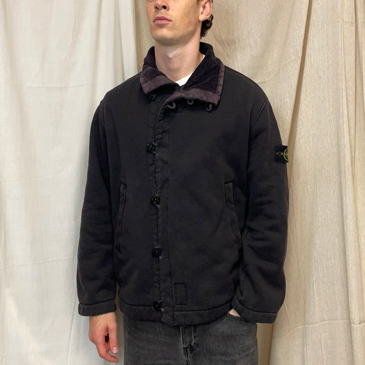 Stone Island Black AW00 Fleece Lined Buttoned Jacket
