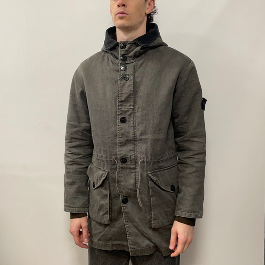 Stone Island Grey AW07 Lino Flax Dutch Rope Liner Hooded Overcoat