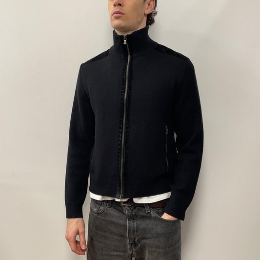 Prada Sport Black 2008 Wool Knit Nylon Panel Cardigan Jacket