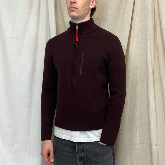 Prada Sport Burgundy 00s Wool Half-Zip Jumper