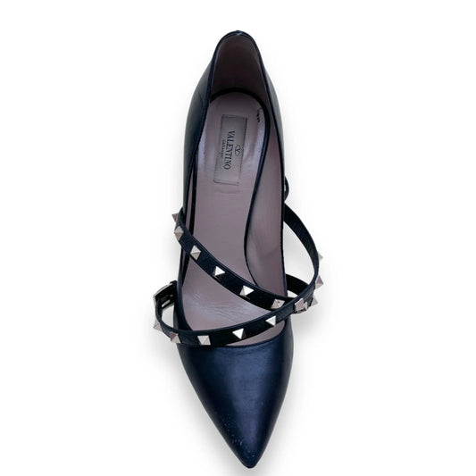 VALENTINO GARAVANI ROCKSTUD ANKLE STRAP LEATHER PUMPS BLACK UK8