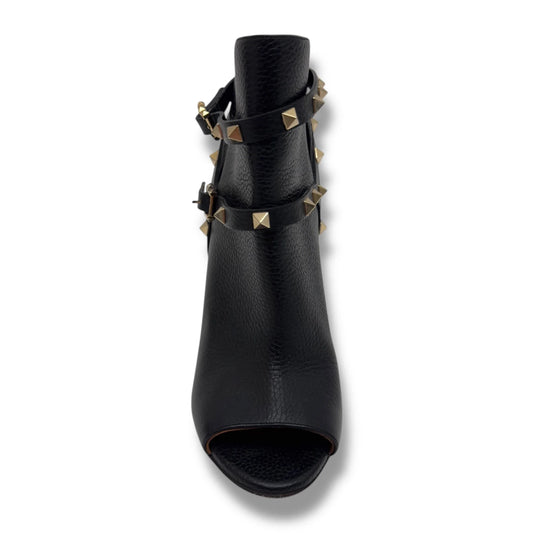 VALENTINO ROCKSTUD ANKLE LENGTH LEATHER BOOTS 100 BLACK / GOLD EU38 / UK5