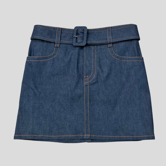 Prada 2018 Rubber Race Logo Denim Belted Mini Skirt - IT36
