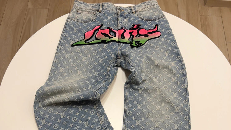 '04 Stussy X Neighbourhood Selvedge Monogram Spellout Print Loose Jeans (33)
